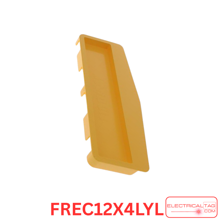 The Panduit FREC12X4LYL is a yellow 12″ x 4″ end cap fitting for the FiberRunner® system, designed to securely close off cable routing paths.